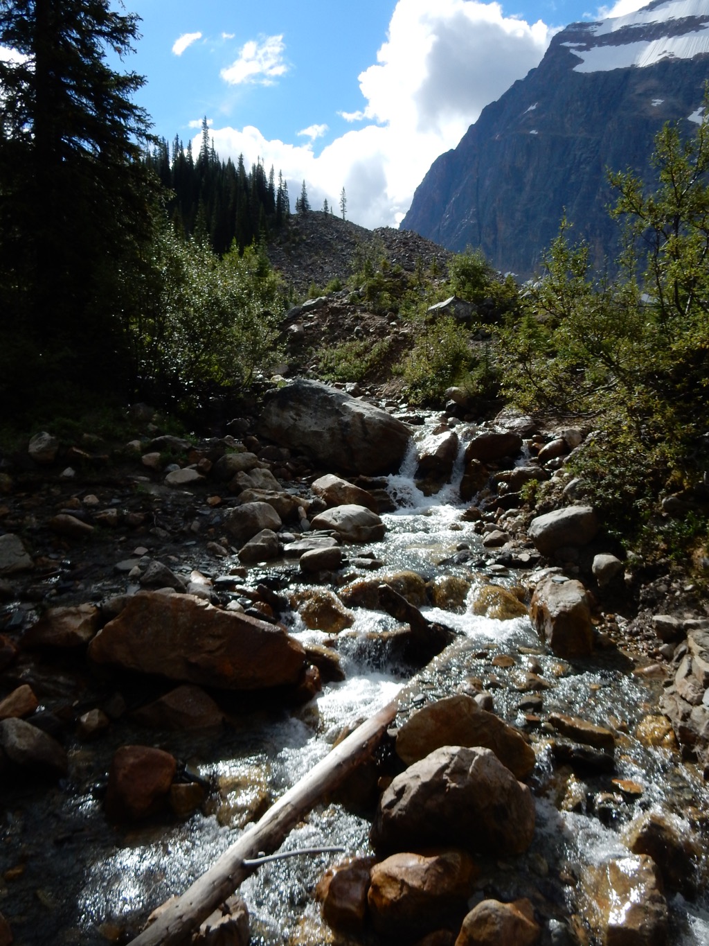 A creek running down the mountain at Mt Edith Cavell in Jasper Park.