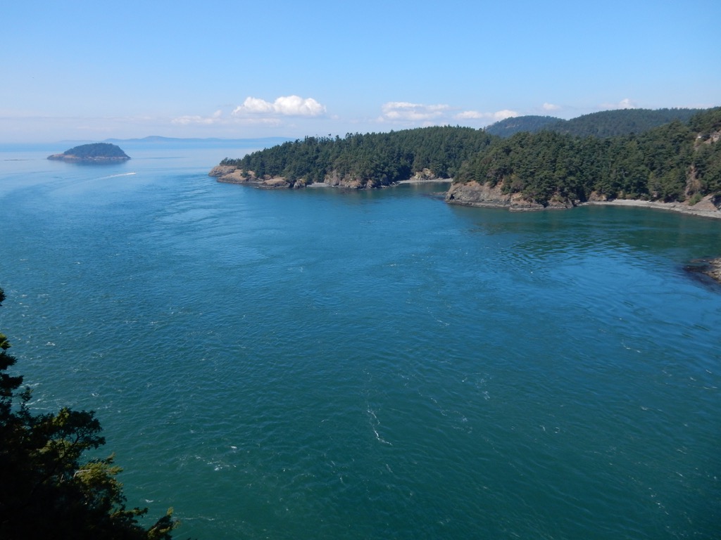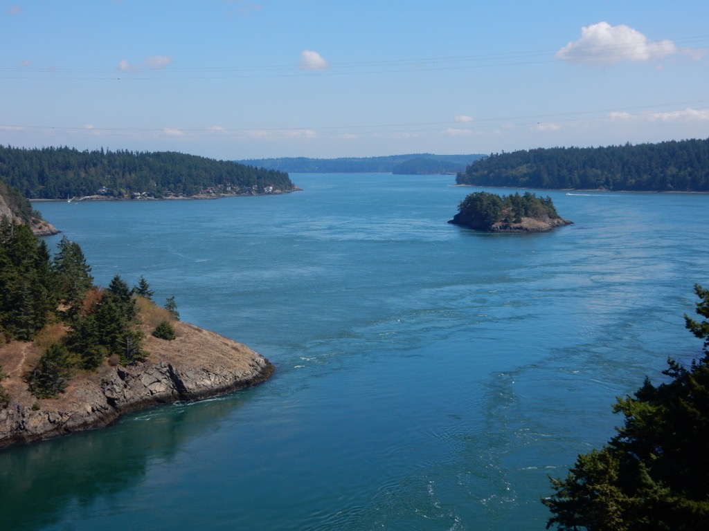 A deeper view west from the bridge over Deception Pass on Whidbey Island.