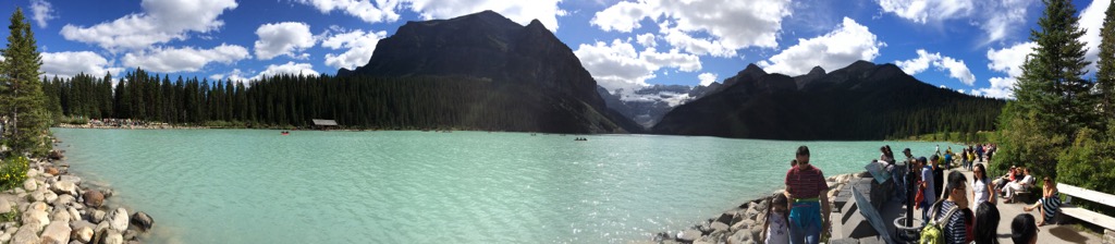 Having an early dinner at a outdoor bistro at Chateau Lake Louise at Lake Louise in Alberta.