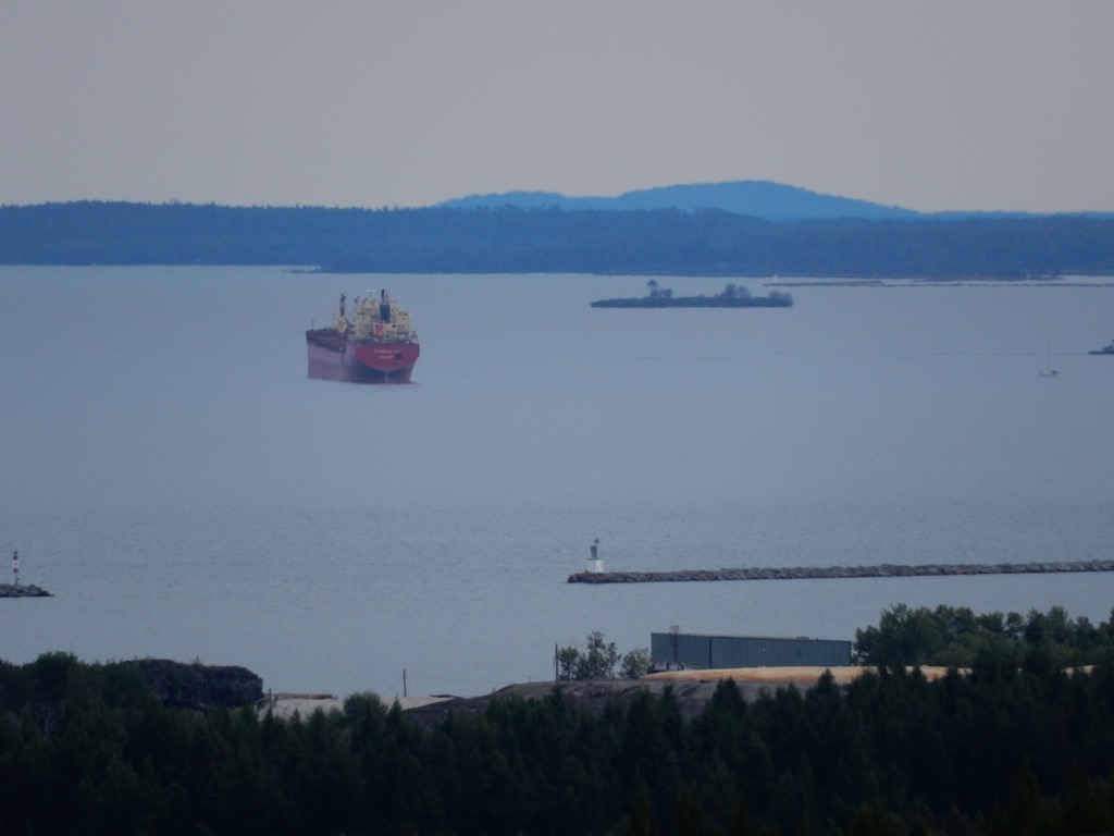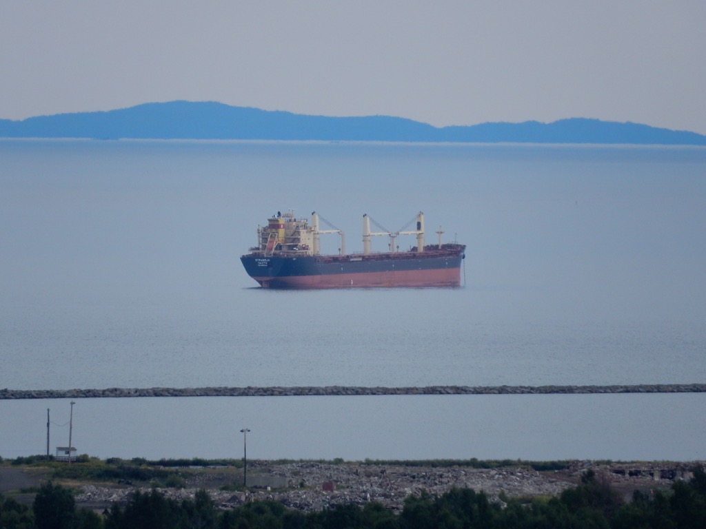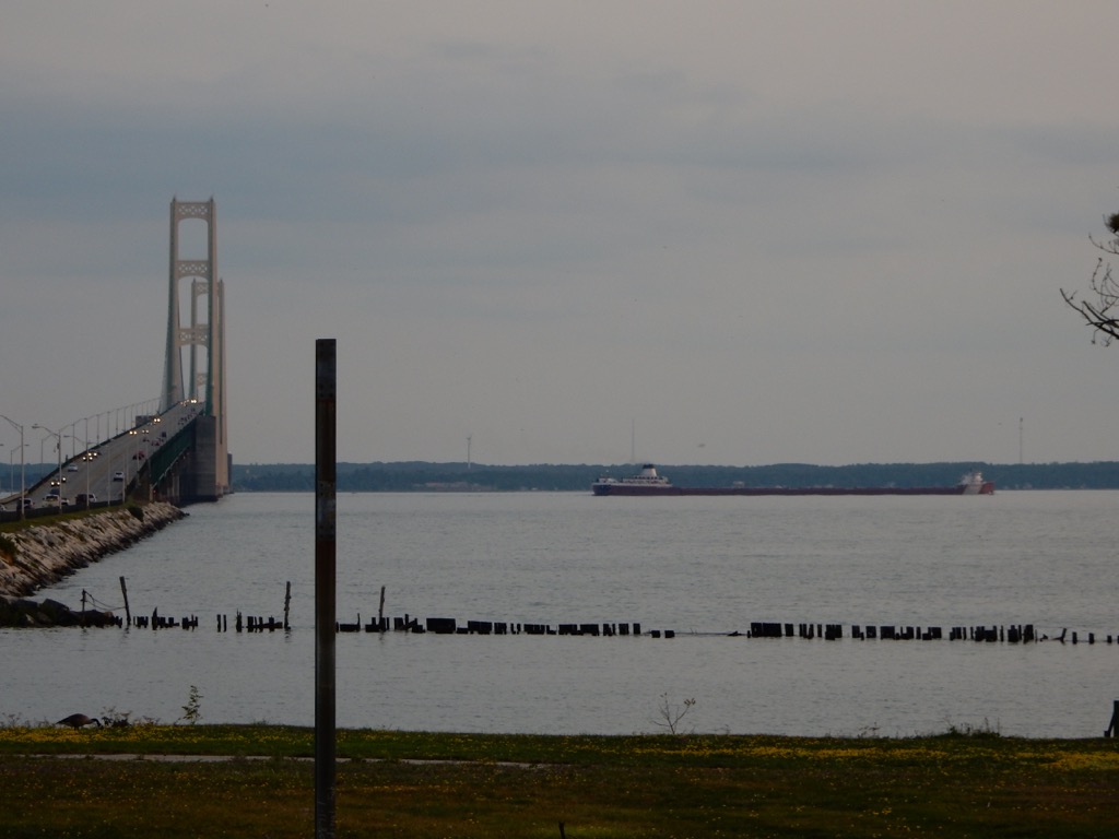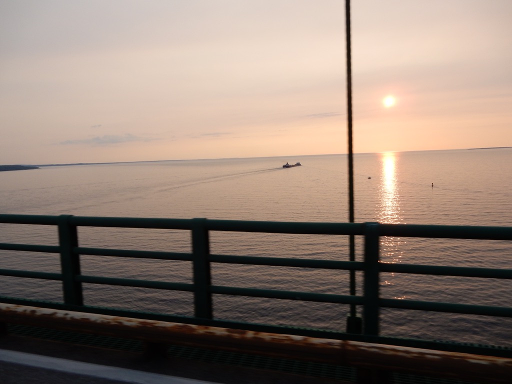 The Arthur M Anderson steams toward the sunset east of the Mackinac Bridge. This photo was foolishly snapped from a moving motorcycle, in traffic, holding the camera in my throttle hand, on the Mackinaw Bridge, with just a railing separating me from a several hundred feet drop into the water. I do not condone this activity! I could have easily ended up a nominee for this year’s Darwin Award.