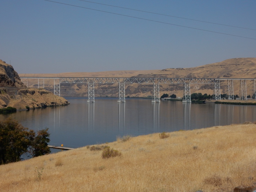 The railroad trestle at the crossing at the confluence of the Palouse River and the Snake River.