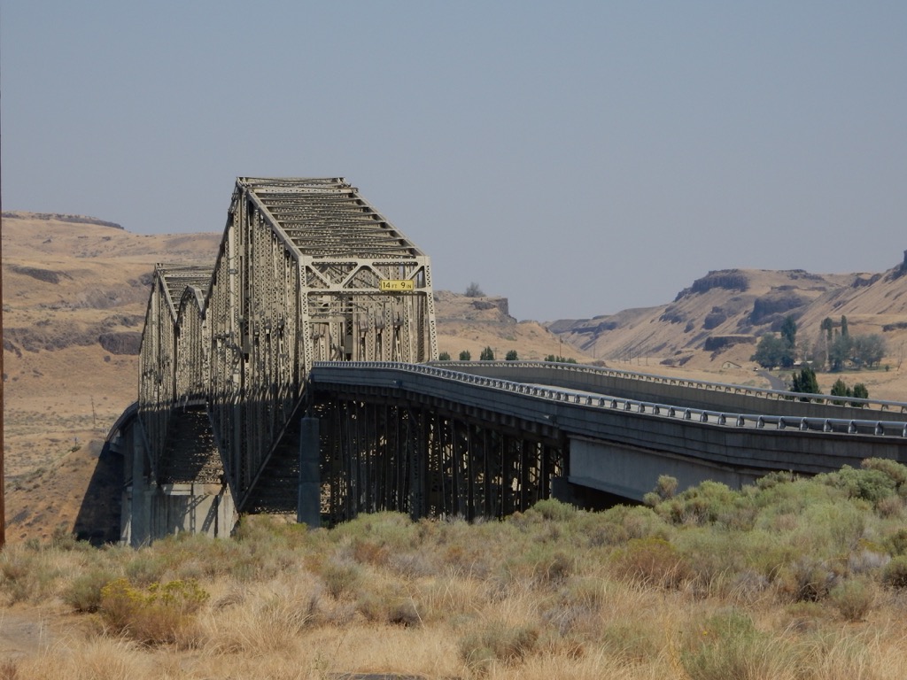 The highway bridge at the crossing at the confluence of the Palouse River and the Snake River.