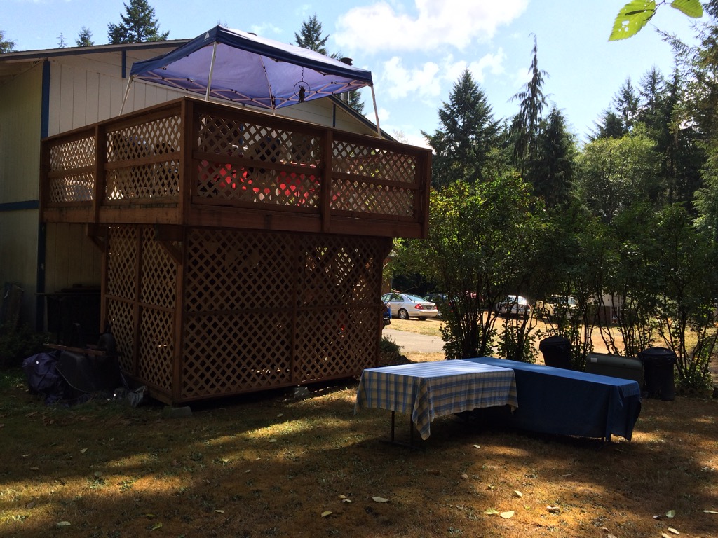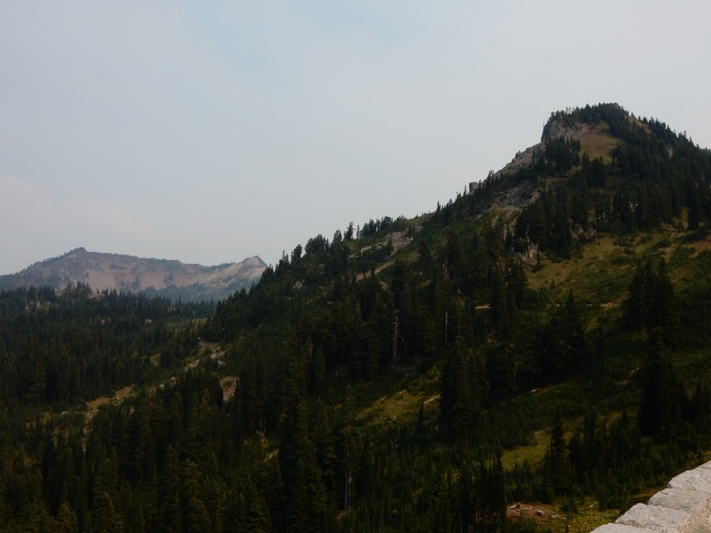 A usually spectacular viewpoint for Mt. Ranier. Smoke from wildfires is making the view a bit hazy. You can just make out the outline of the mountain.
