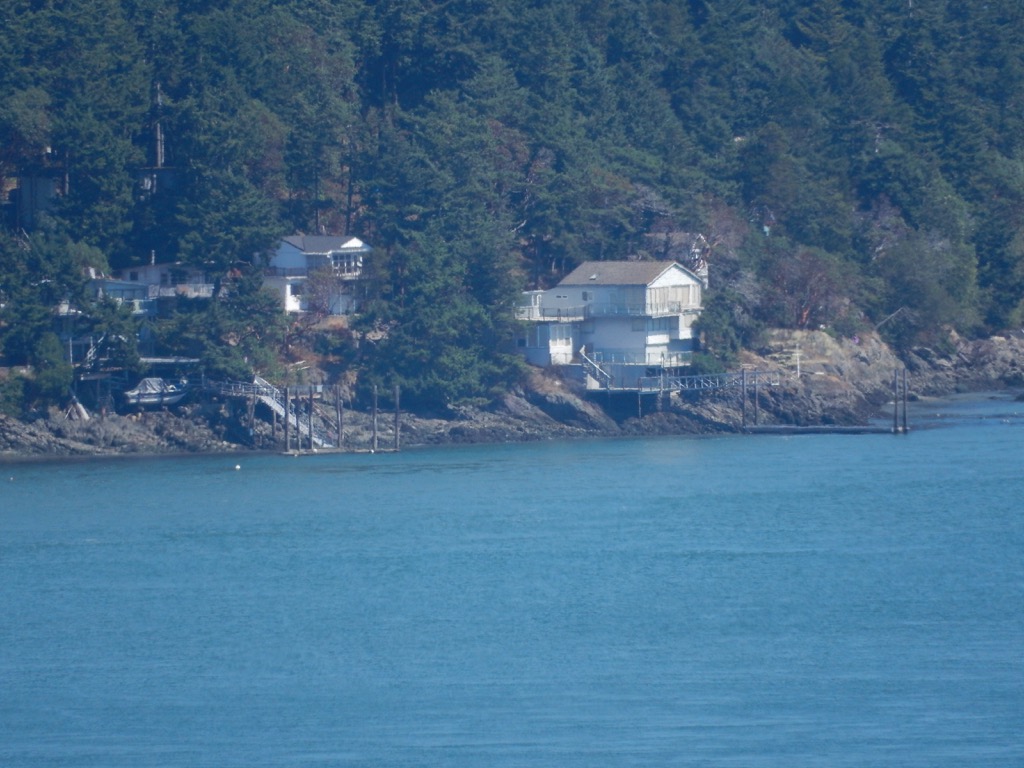 A closeup of homes on the north shore west from the bridge over Deception Pass on Whidbey Island.