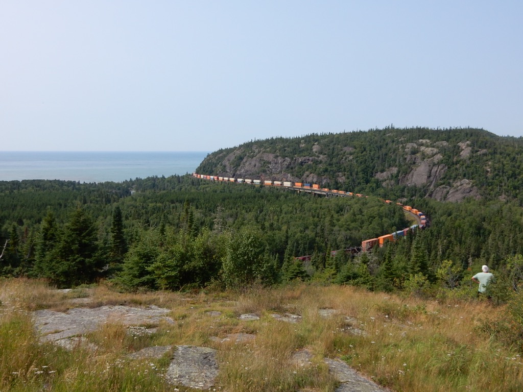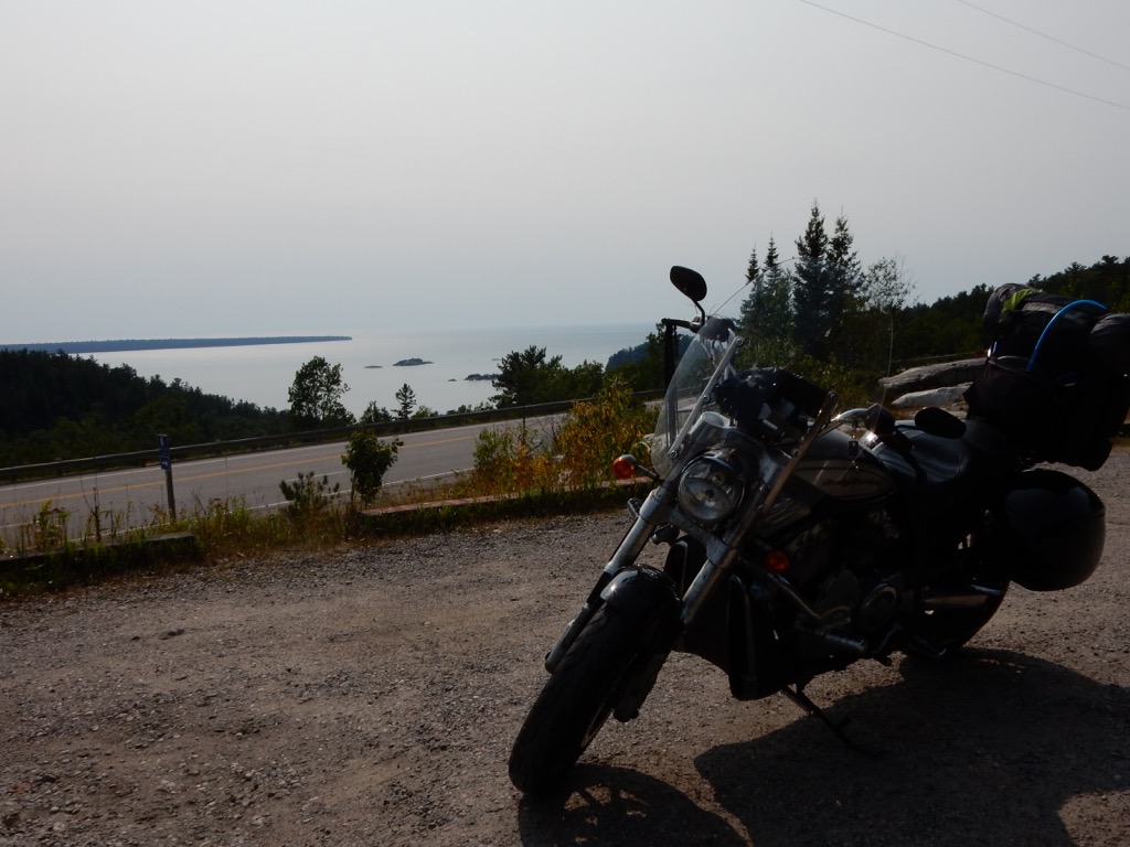 The Vector at an overlook over the coast off Lake Superior Provincial Park in Ontario.