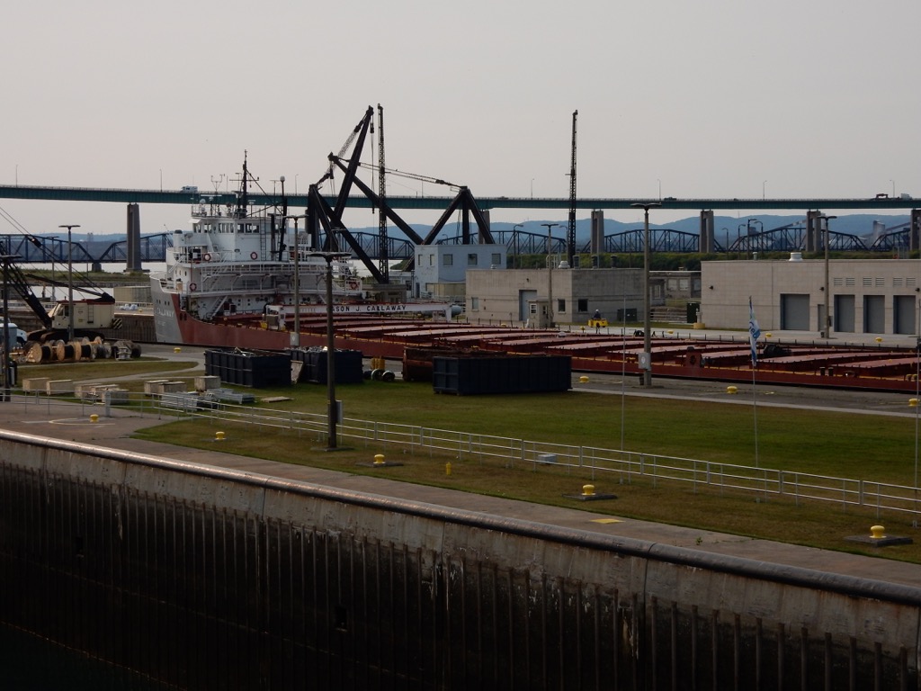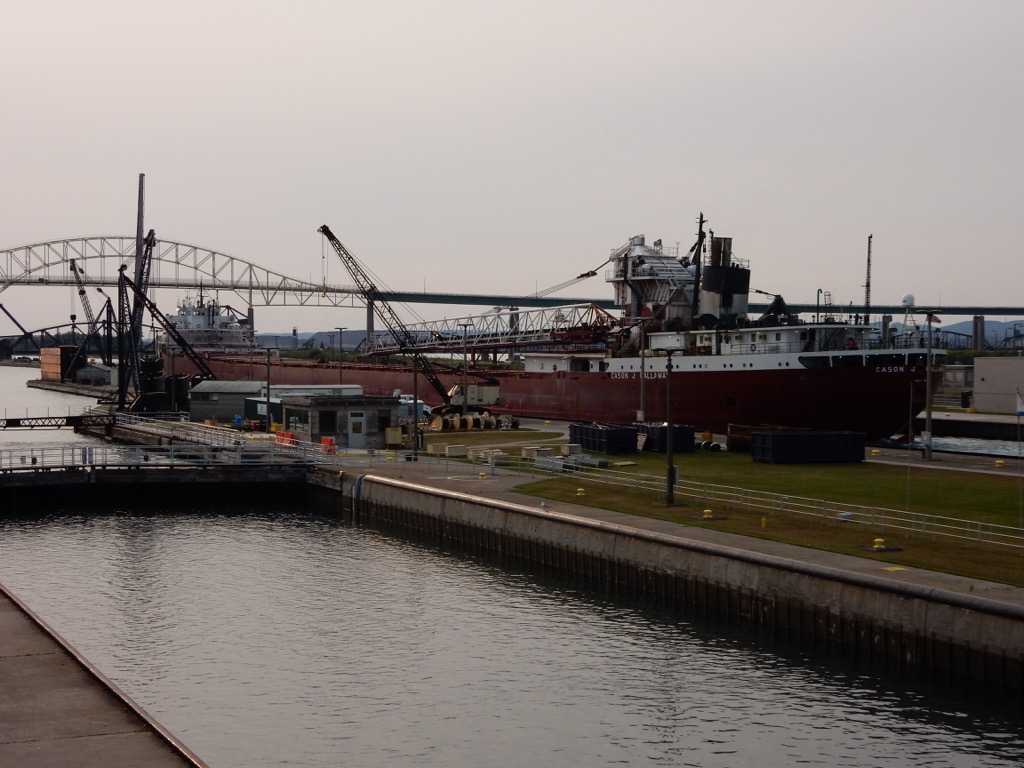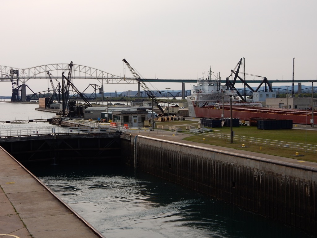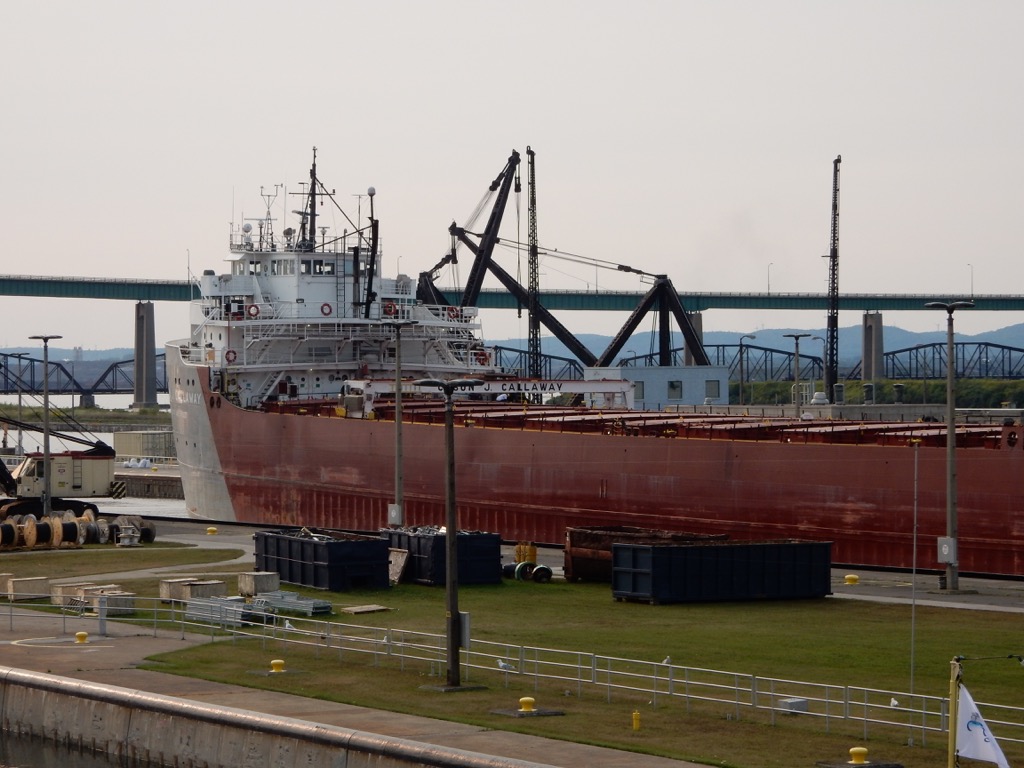 The Cason J Callaway upbound through the Soo Locks. The lock gates have just been closed and the lock is beginning to fill.