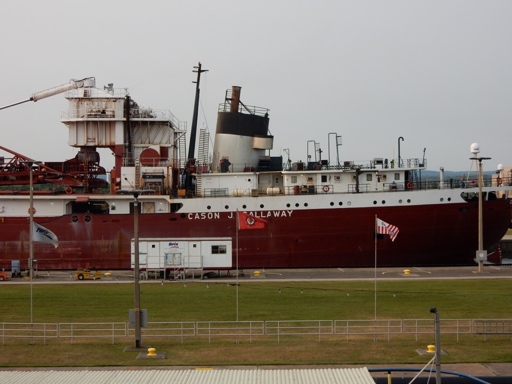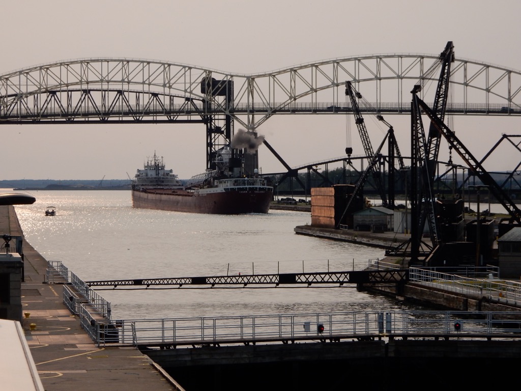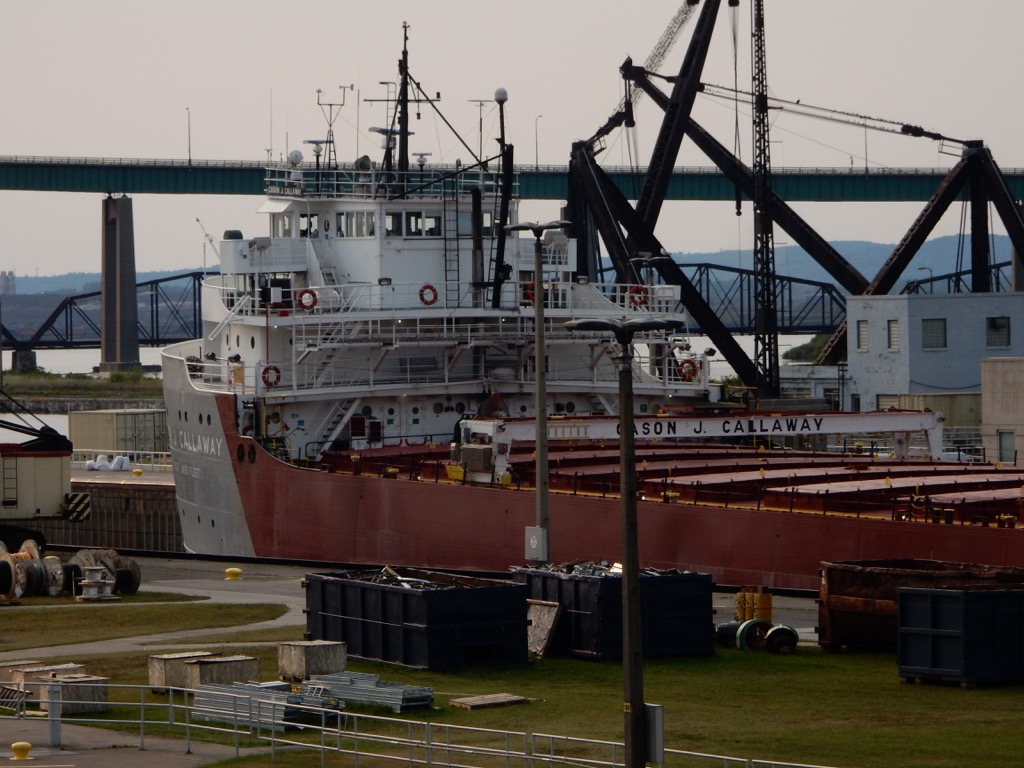 Safely clear of the Soo Locks, the Cason J Callaway increases turns to continue up the Saint Mary’s River.