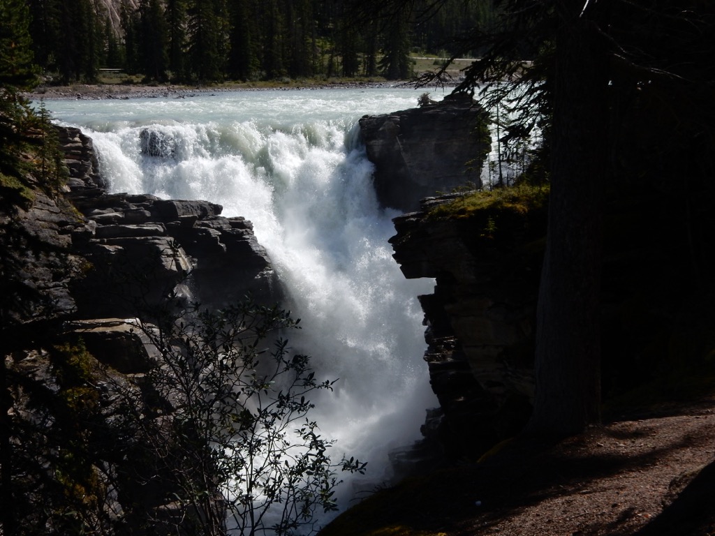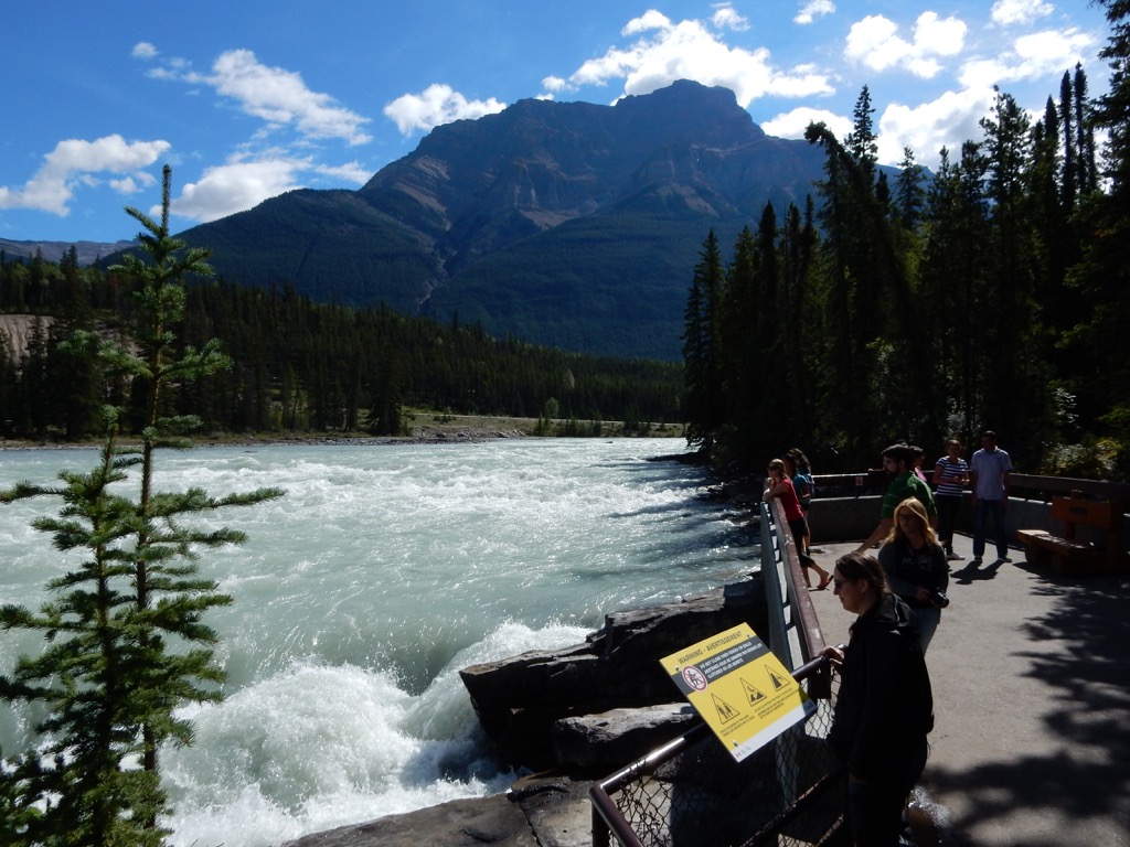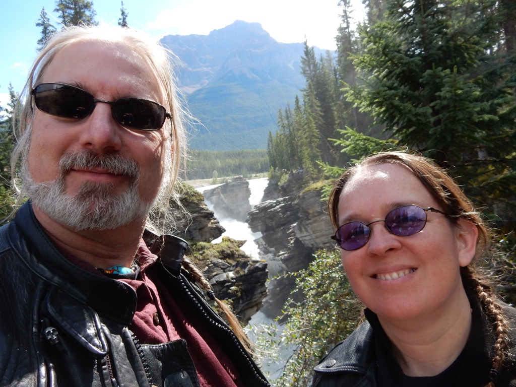Ghost and Karen at the Athabasca Falls in Jasper Park.