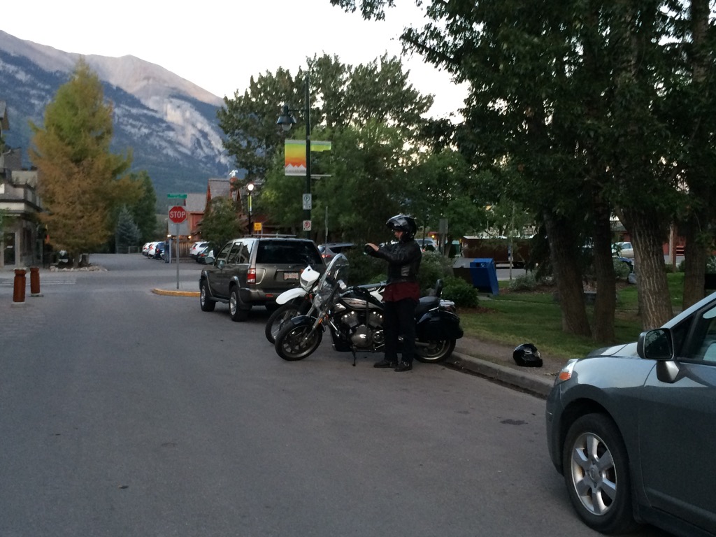 Ghost packs the Vector in front of our lucky find of a cheap rented room in Jasper, AB.