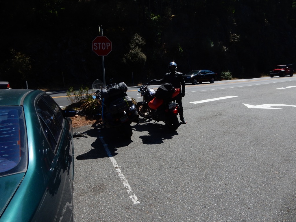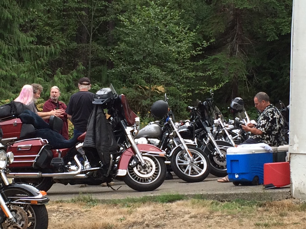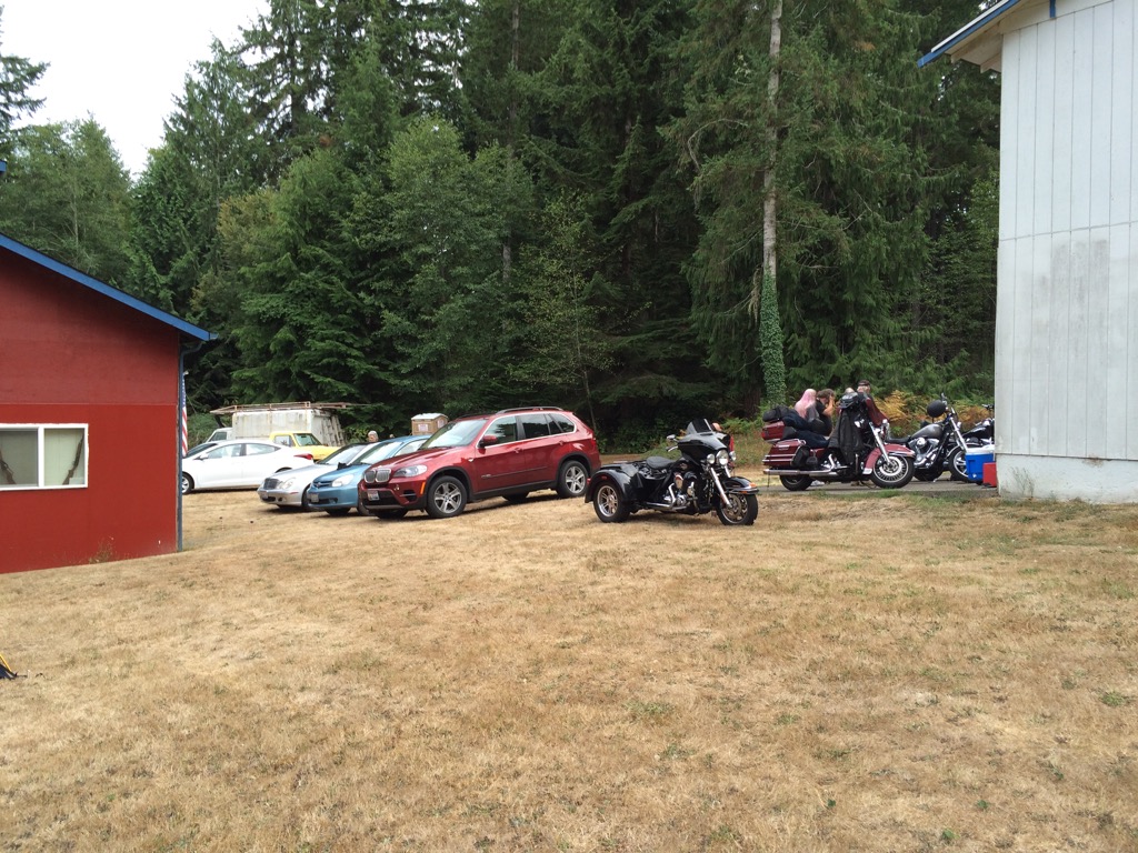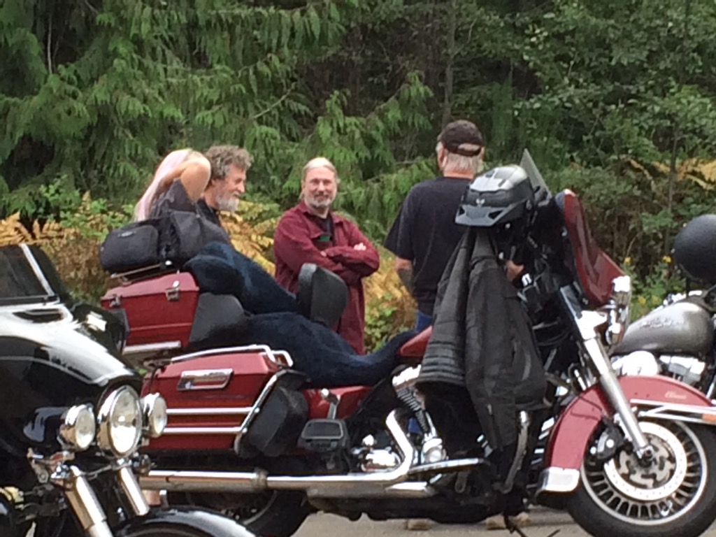 Phil guards the bikes in the parking lot at Deception Pass on Whidbey Island.