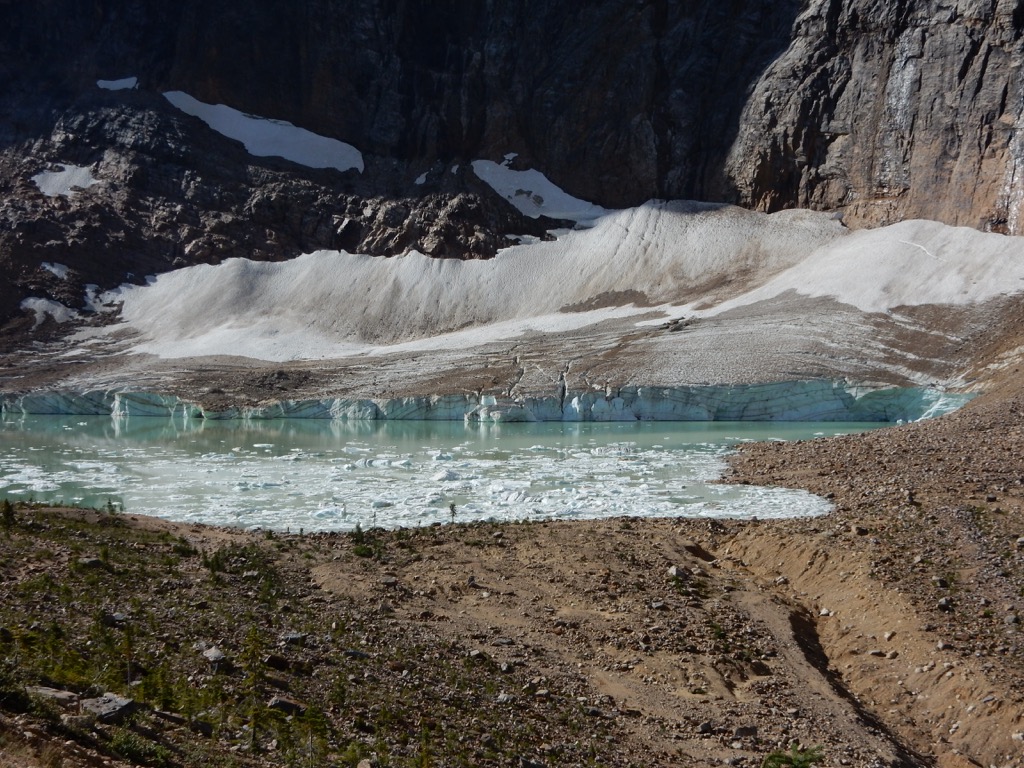 The glacier and lake in the bowl below Mt Edith Cavell in Jasper Park.