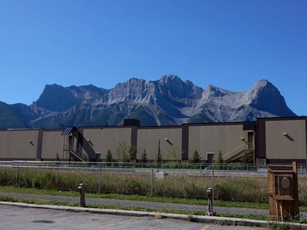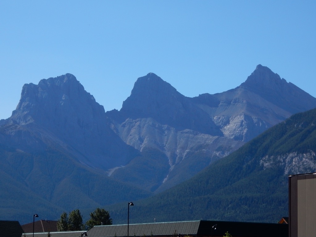 The Three Sisters peaks lie west of our hotel in Canmore, AB.