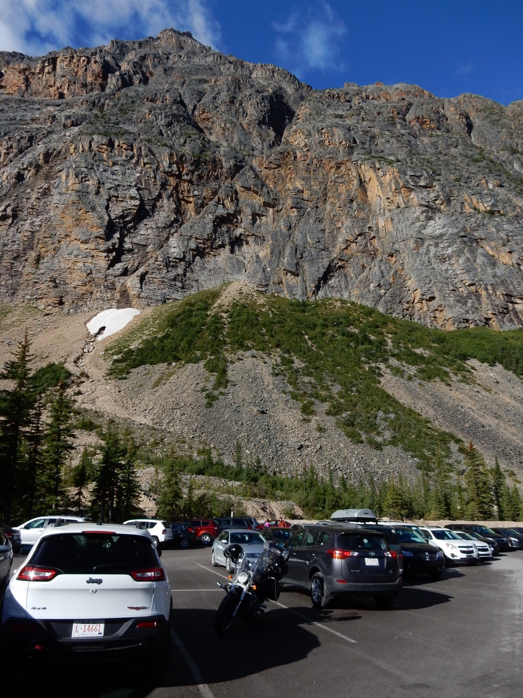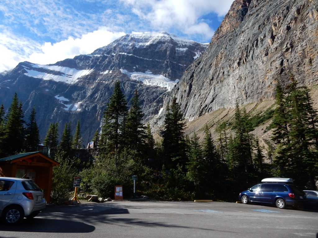 The parking lot at Mt Edith Cavell in Jasper Park.