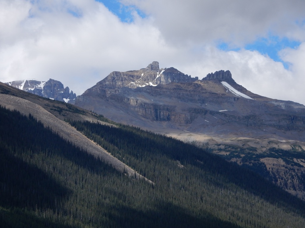 The mountain range east of the Athabasca Falls in Jasper Park.