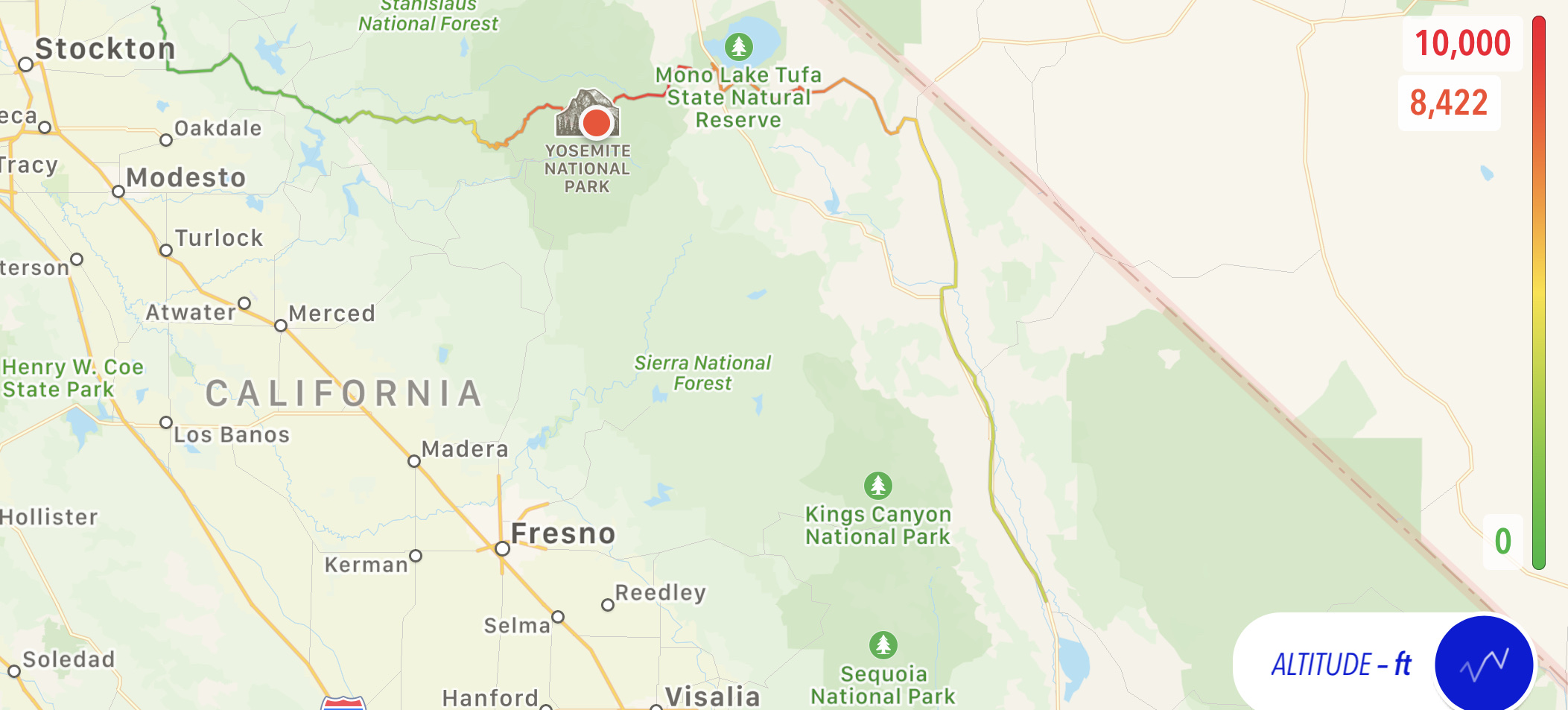 Here’s the map and altitude track for the day.