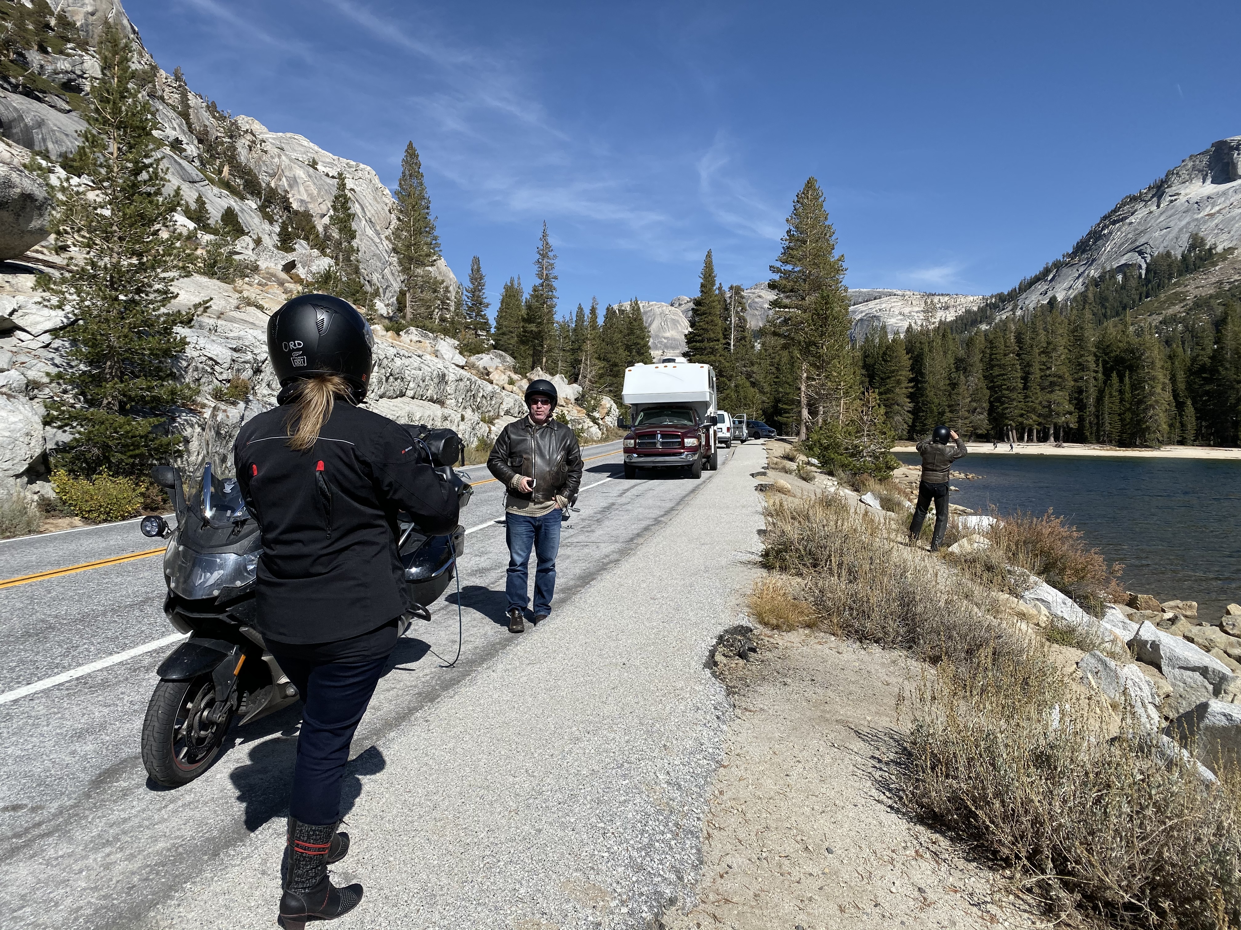The run up Tioga was fun and without too much impeding traffic. As a lead, I committed the sin of passing the only paved turnoff on Tioga pass without stopping for photos. (My name is Ghost, and I’m an idiot sometimes.) Over the top and down the west slope a bit, we reached a lake next to the road and took a few photos there: