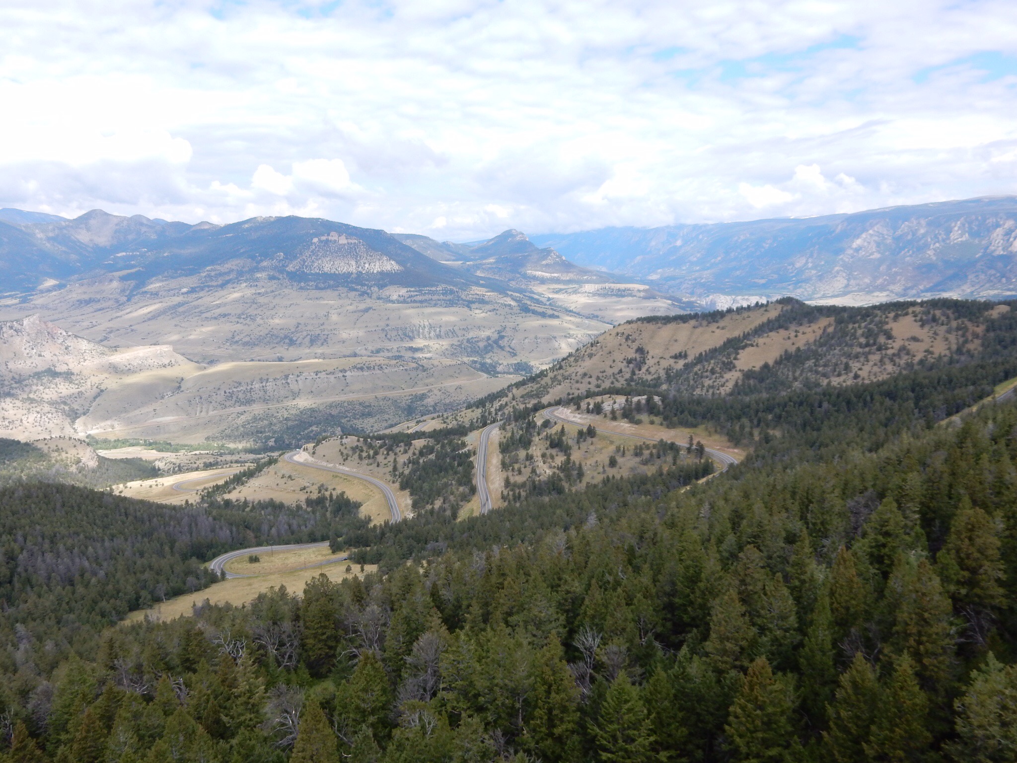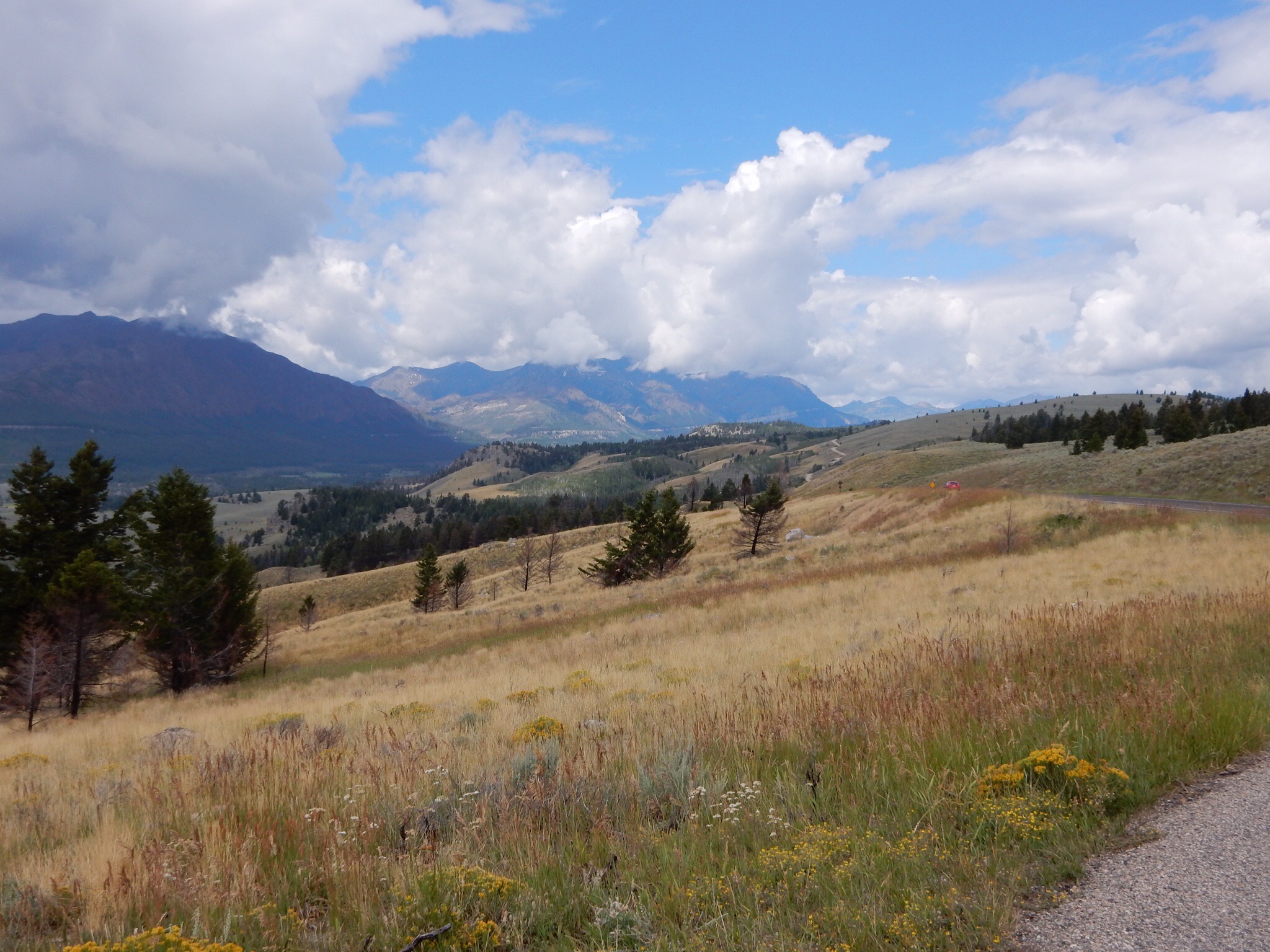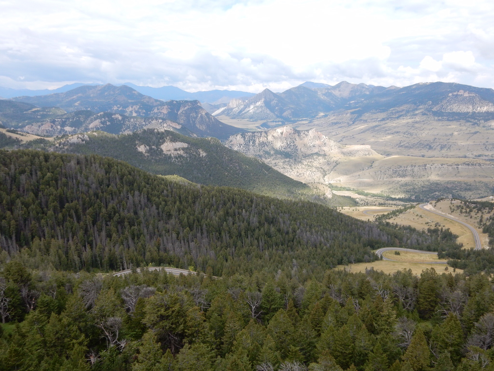 With the rain falling, even lightly, I elected to forgo a morning visit to the showers and just get my ass on the road. I rolled slowly through Cody and stopped briefly to pick up gas and top-off my Camelback water bag for the day’s ride. During the gas stop, the rain ended it’s last few sprinkles and my renewed ability to use the internet allowed me to see that the rain was moving south. Cool. Then I was heading out of town to the north on WY120. It’s only a rolling 10 miles or so to the turnoff for WY296, which is otherwise known as the Chief Joseph Scenic Byway.