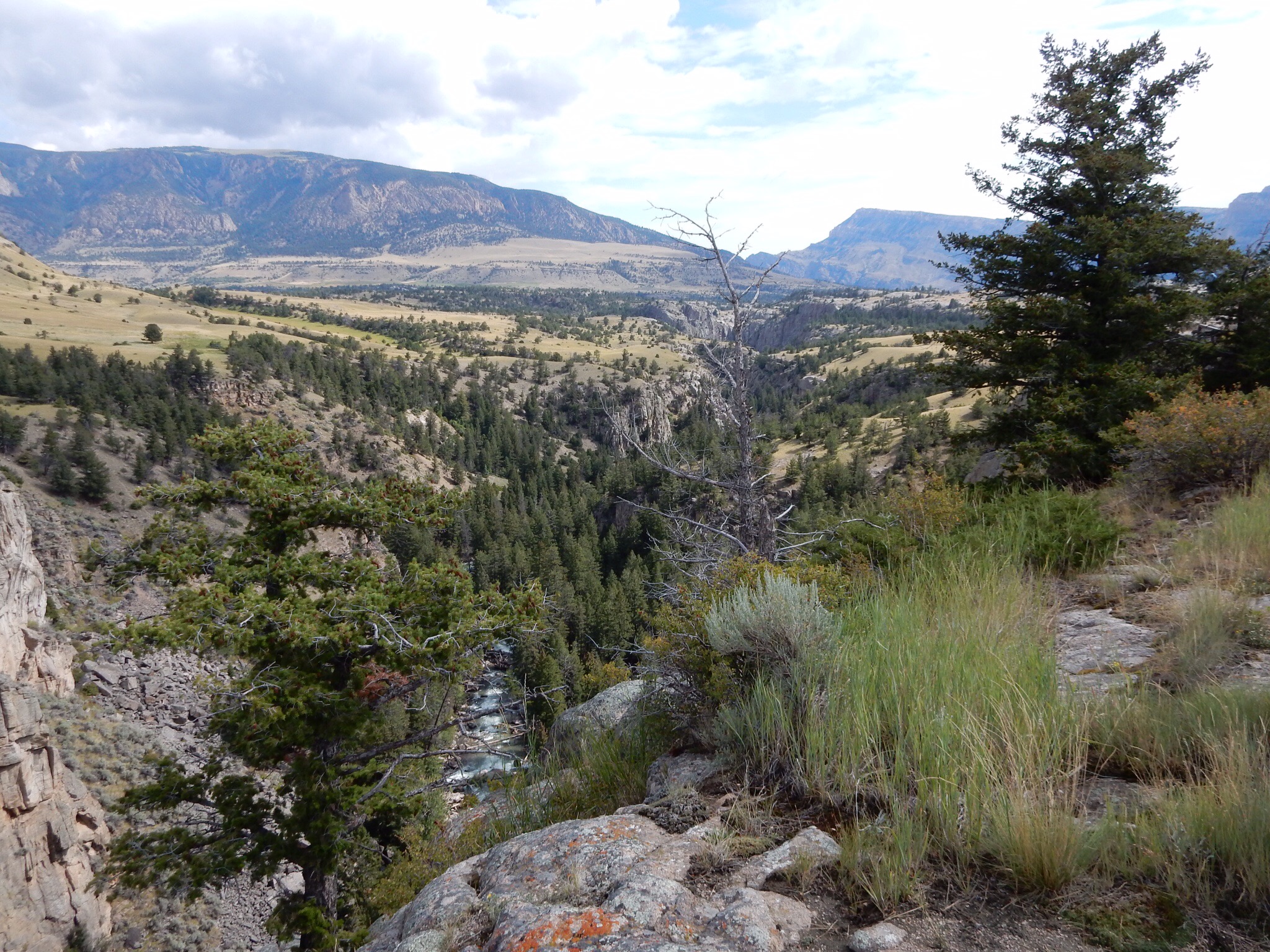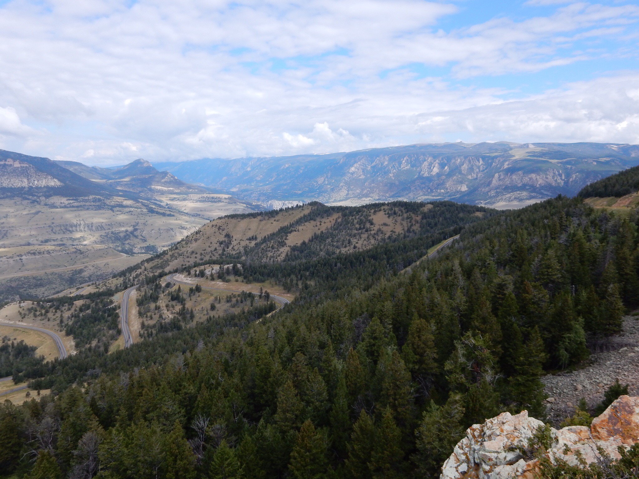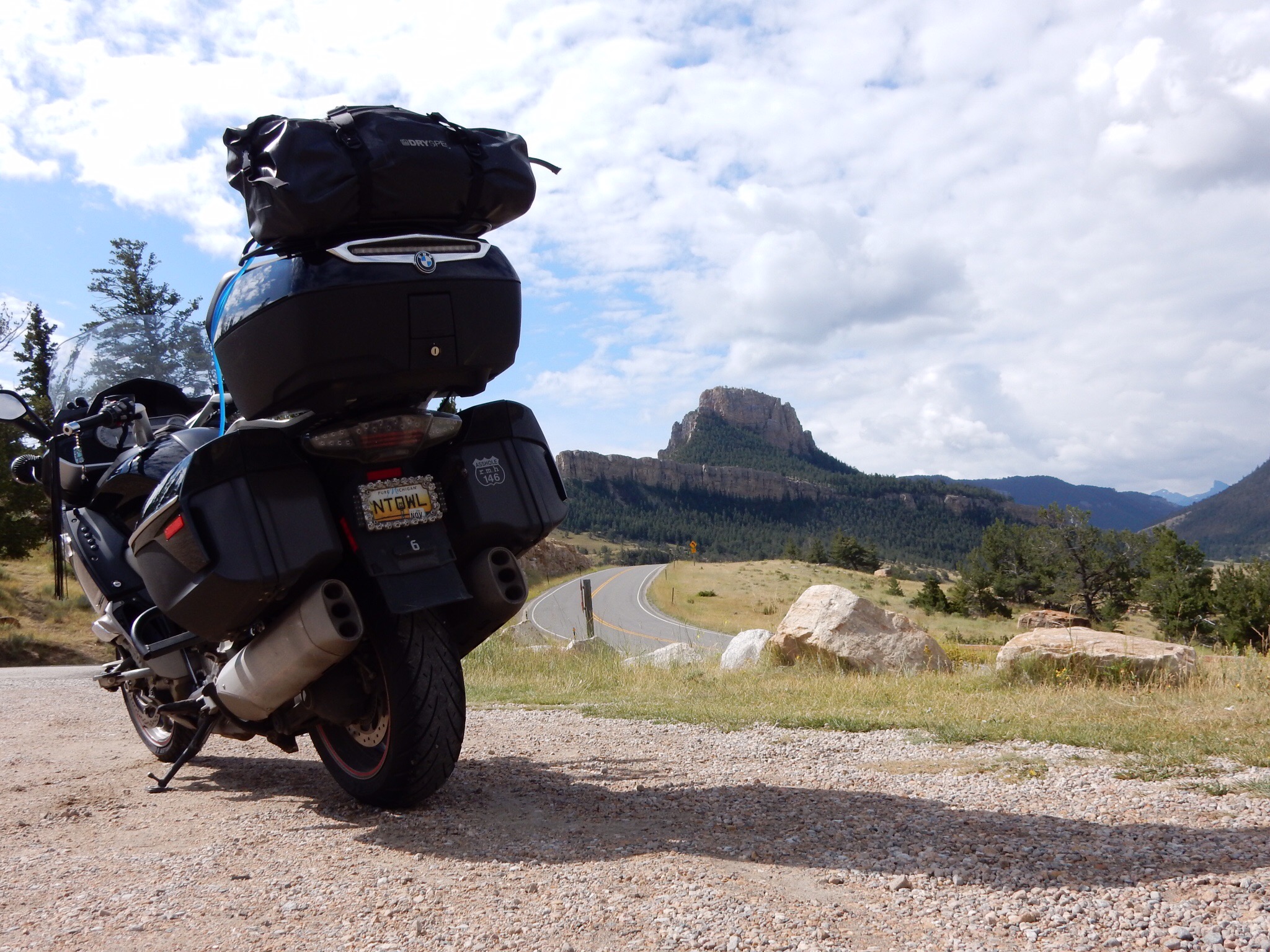 With the rain falling, even lightly, I elected to forgo a morning visit to the showers and just get my ass on the road. I rolled slowly through Cody and stopped briefly to pick up gas and top-off my Camelback water bag for the day’s ride. During the gas stop, the rain ended it’s last few sprinkles and my renewed ability to use the internet allowed me to see that the rain was moving south. Cool. Then I was heading out of town to the north on WY120. It’s only a rolling 10 miles or so to the turnoff for WY296, which is otherwise known as the Chief Joseph Scenic Byway.
