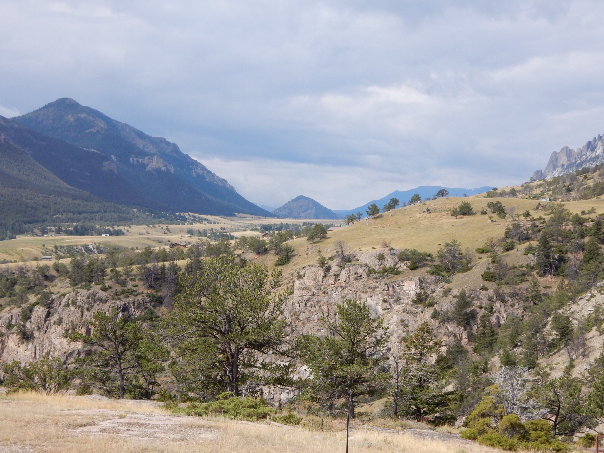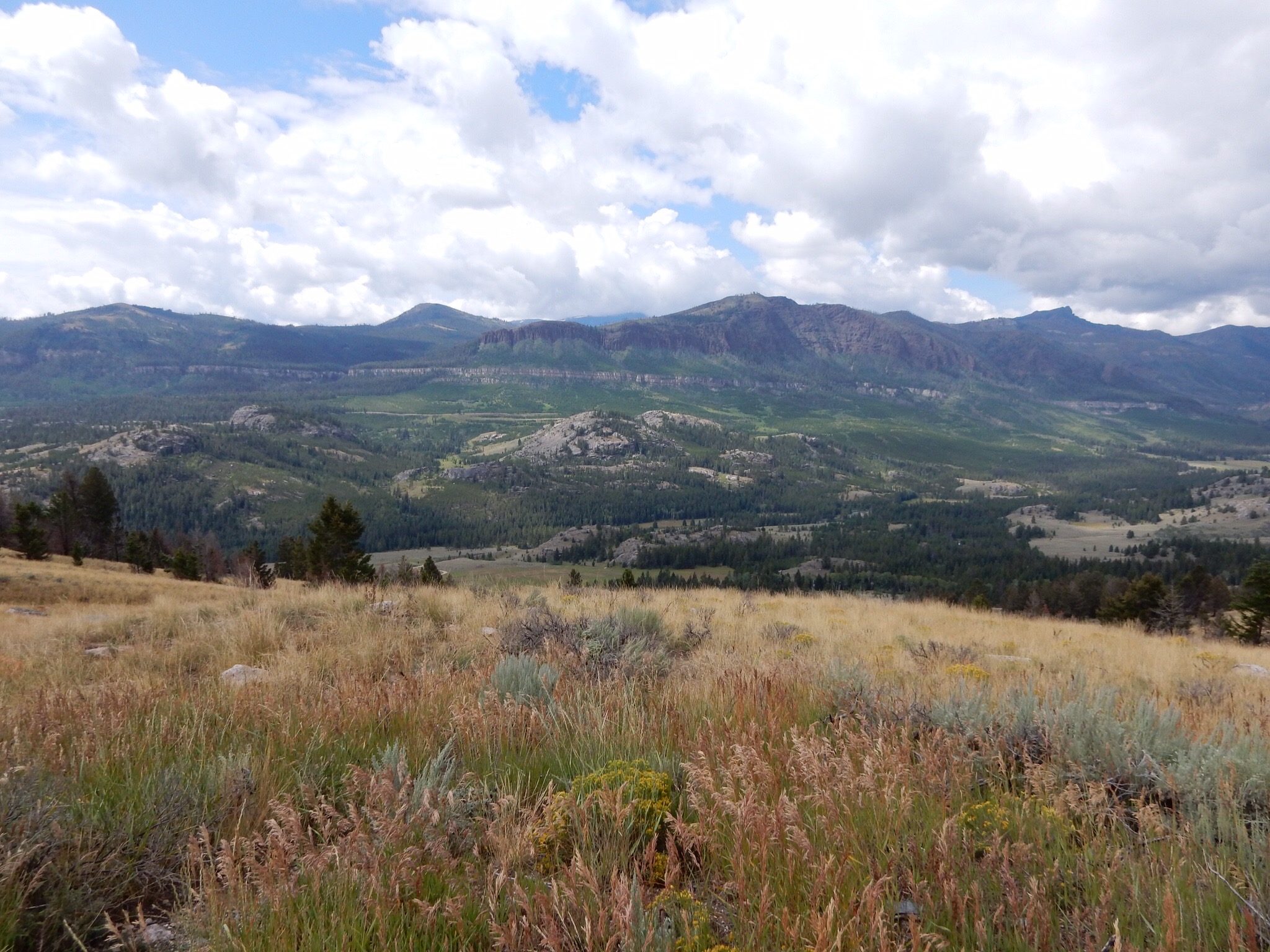 By now, the sun was shining more than it was hiding behind the clouds. I made good time along the rest of the Chief Joseph, winding around mesas and along a riverbed. Towards the end of the valley, you can usually see Beartooth Mountain off to the west, but today its peak was shrouded in clouds. I reached the end of the Byway at US212, and turned right to go over Beartooth Pass.