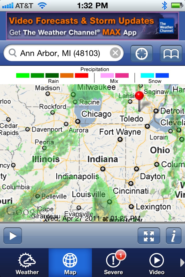 Here’s the latest radar from the Weather Channel.