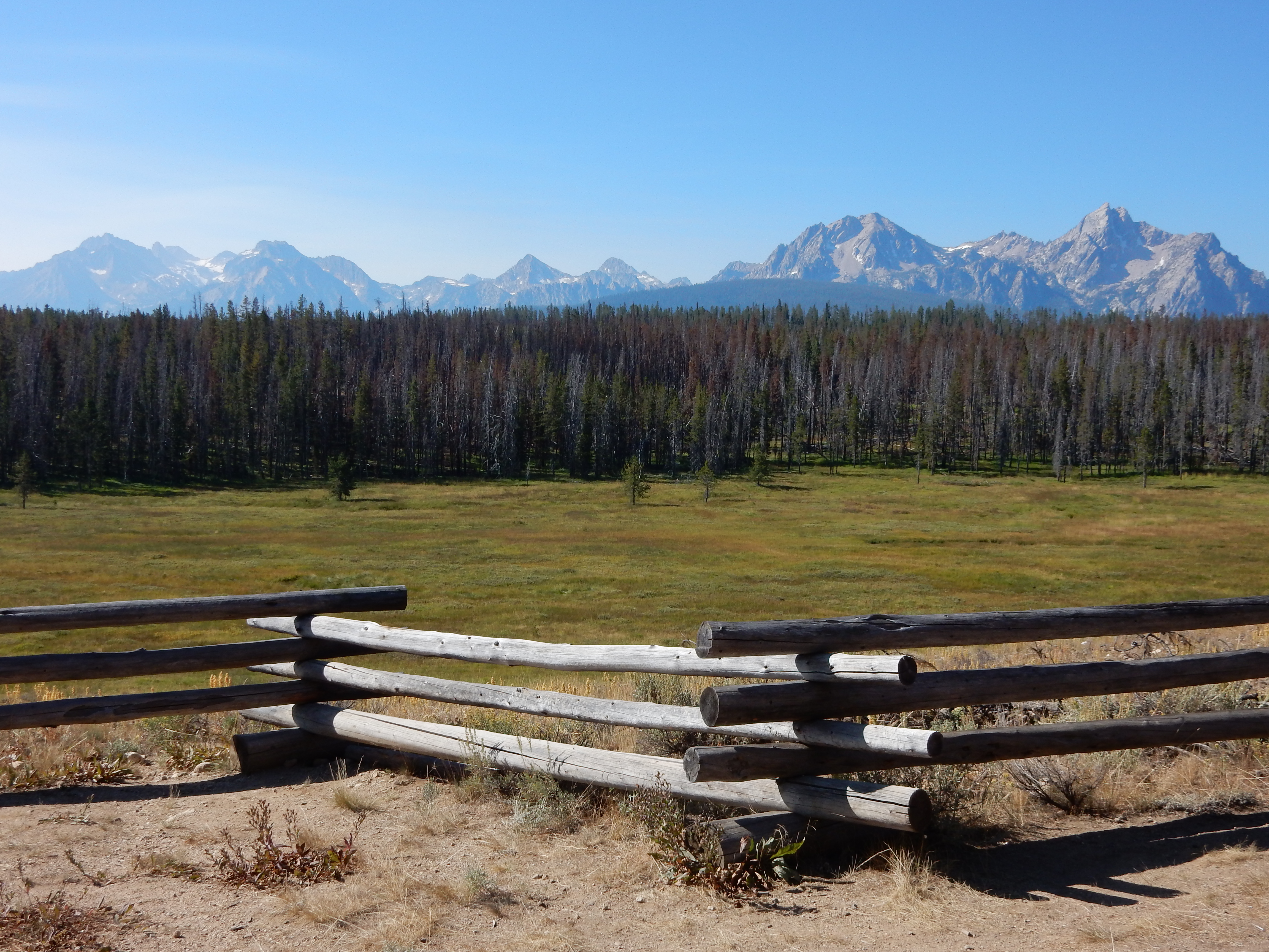 Soon thereafter, the road did the aforementioned curve back to the southeast and I was able to catch another look at the Sawtooth range from another vantage point.