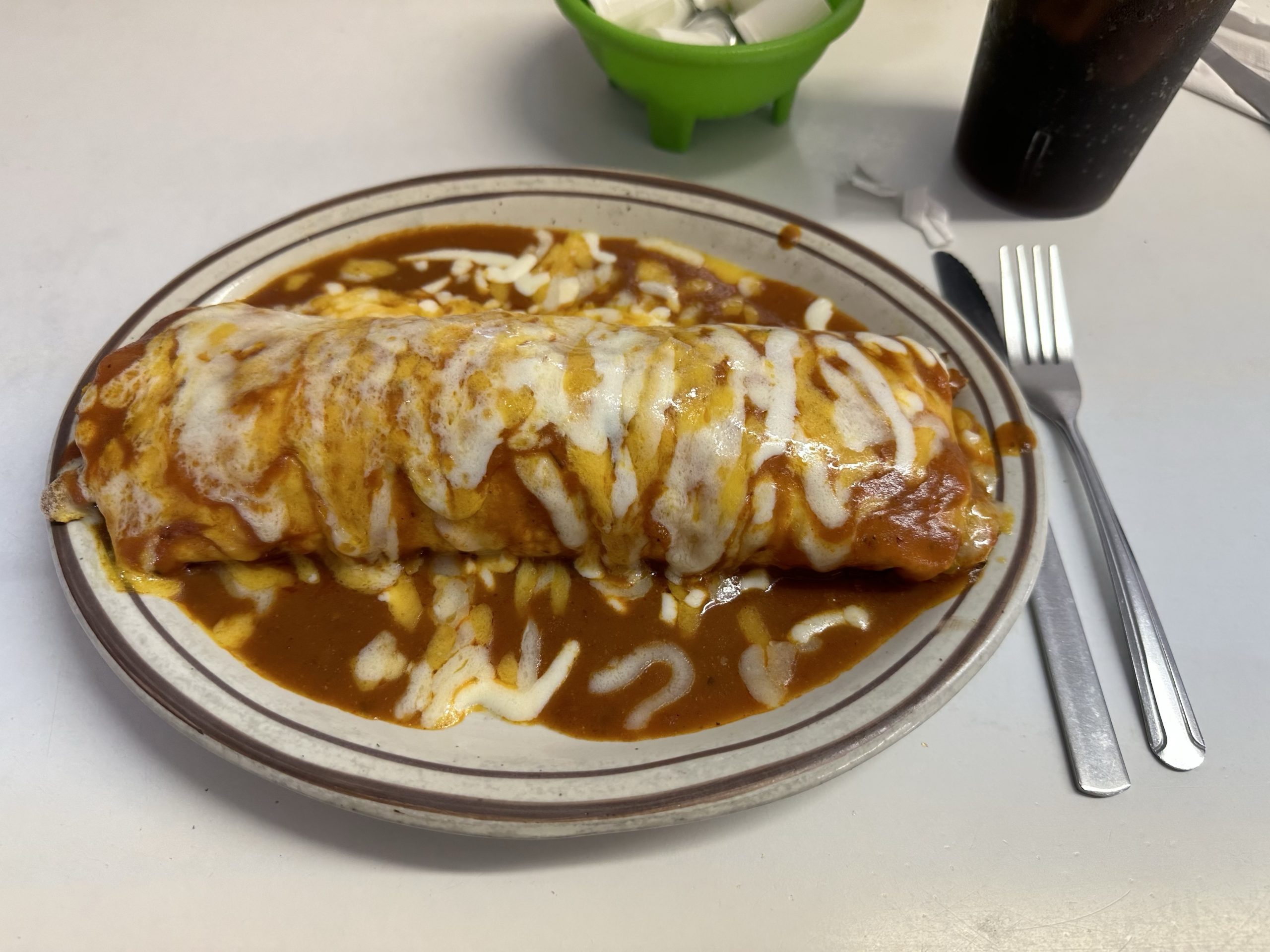 The burrito was delicious. I ate well, drank a gallon of Diet Coke, and was back on my way before noon.