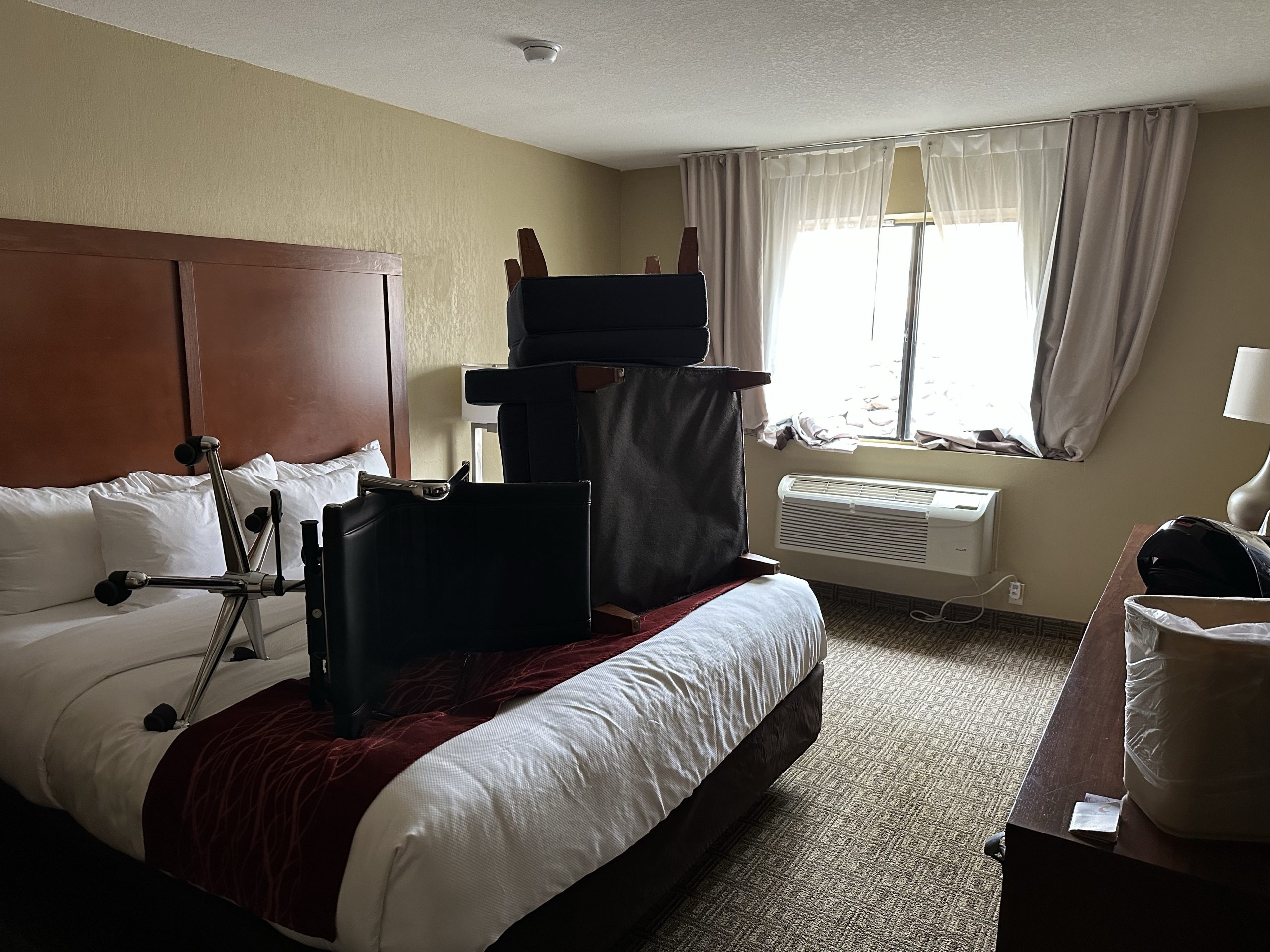 I parked at the Comfort Inn in Silver City and checked in. When I arrived at my room, I found the room to be in a humorous condition.