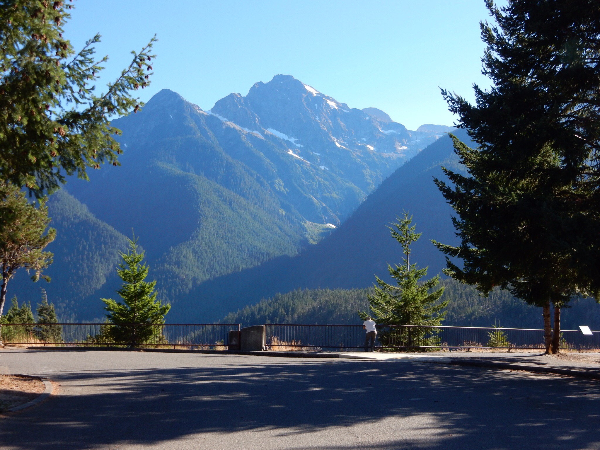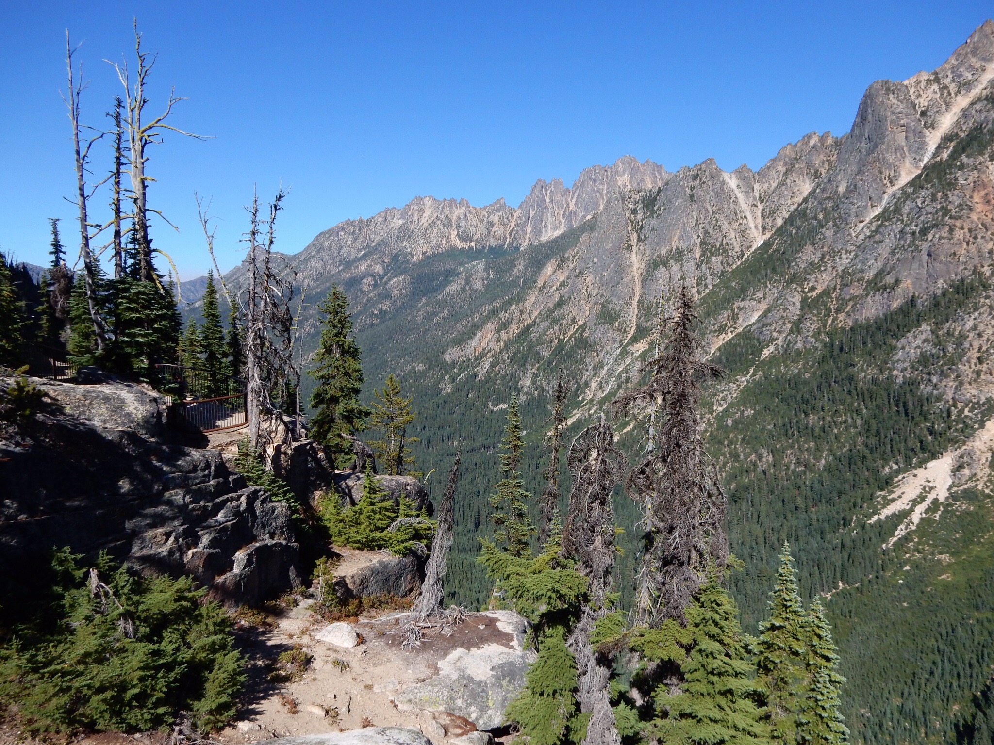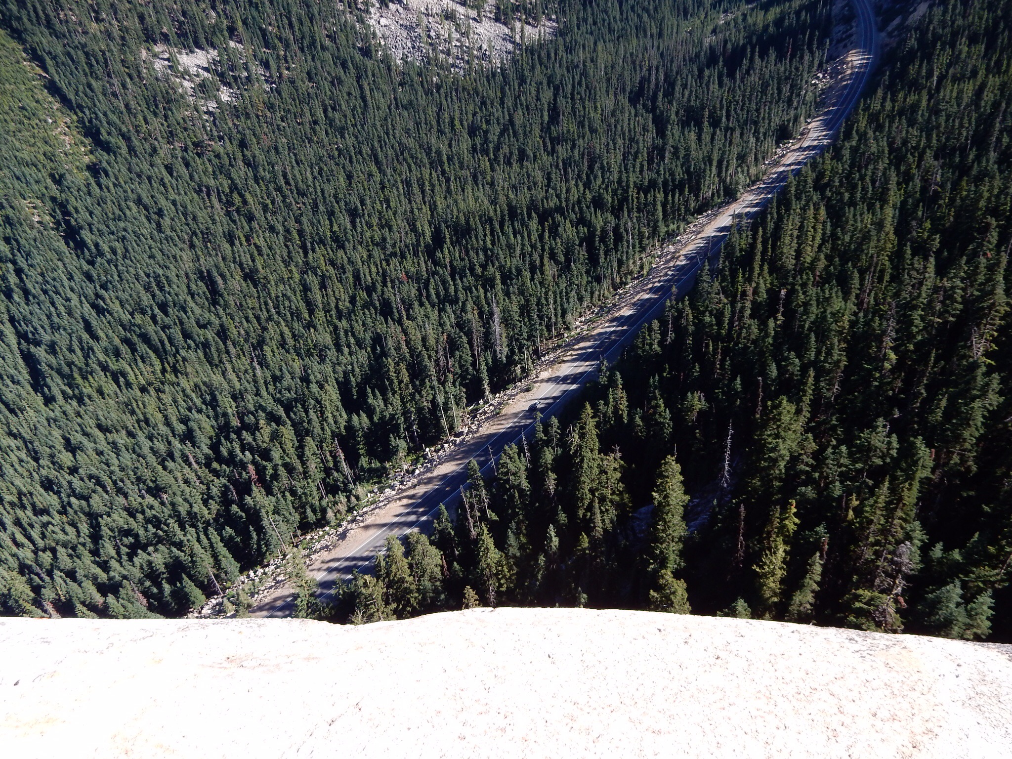 West of Winthrop, WA20 gets much more remote and starts to climb higher into the mountains. The climb culminates in a single switchback in the shadow of a tall mountain cliff, leading up to Washington Pass. There’s a scenic overlook just west of Washington Pass. If you don’t stop here and take the short (150 yard) hike to the overlook point, you’re a moron. Enough said.
