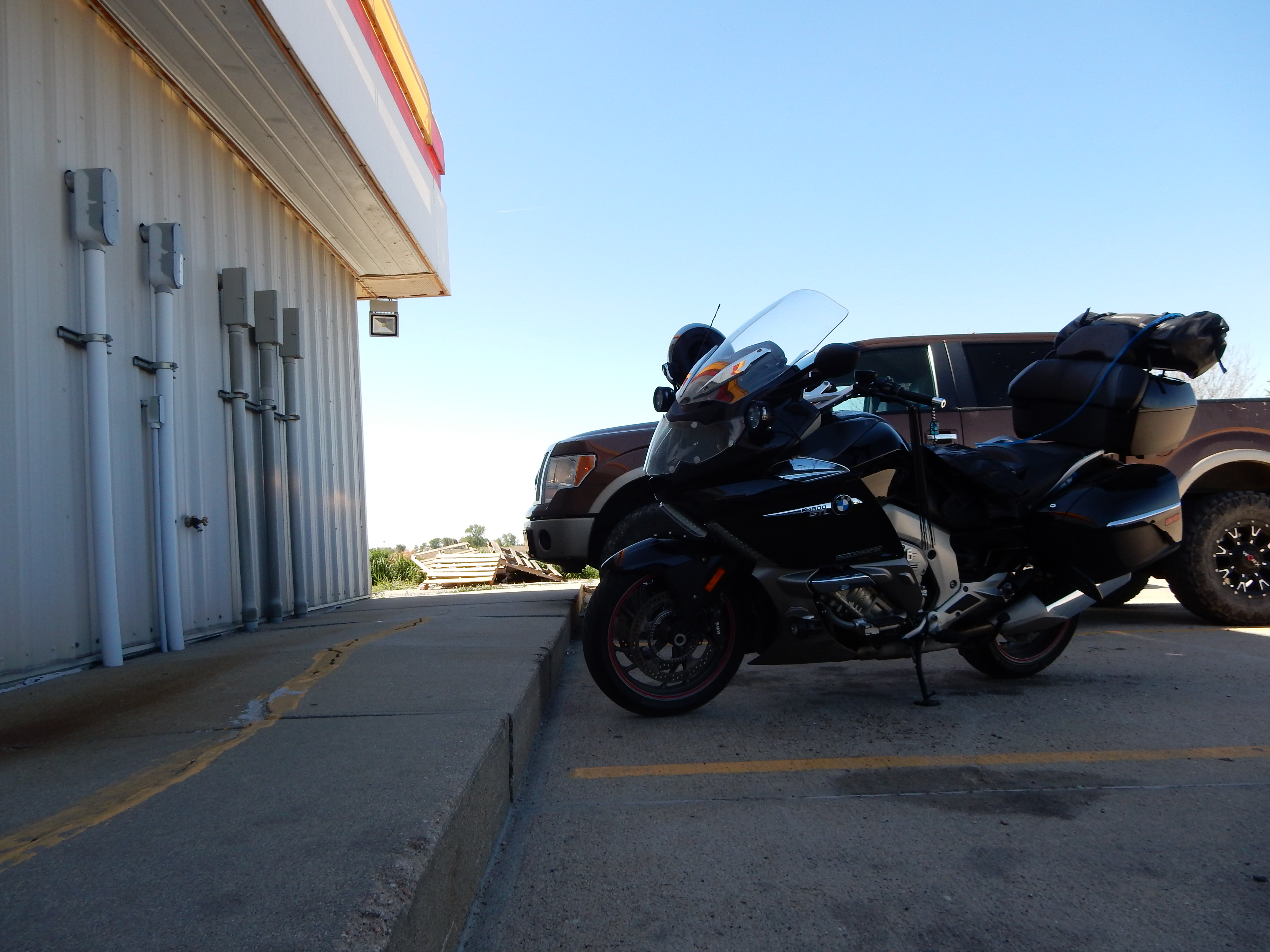 The gasoline was (obviously) for the bike. The other stuff was not for the bike. The temperatures had reached nearly 90º and I had been doing some sweating in my nice black heat-absorbing Leathers. The Gatorade was to put back the electrolytes I’d been losing; the Pringles were to replace some of the salt (and provide a modicum of sustenance).